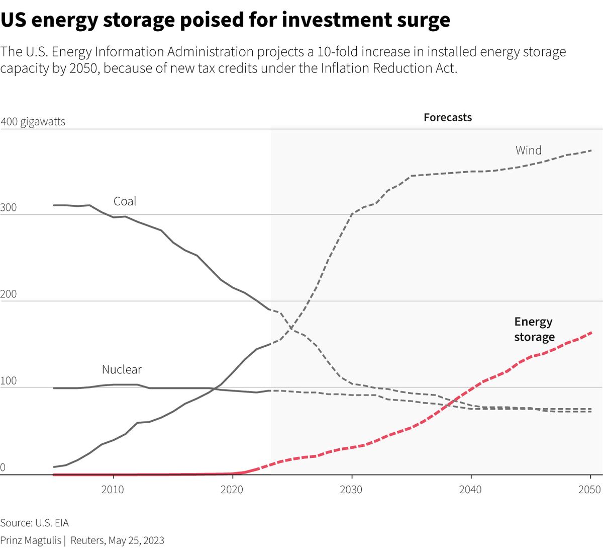 In 2022, Texas accounted for about a third of new US grid-scale battery storage, just behind California which has mandated energy storage development for ten years.