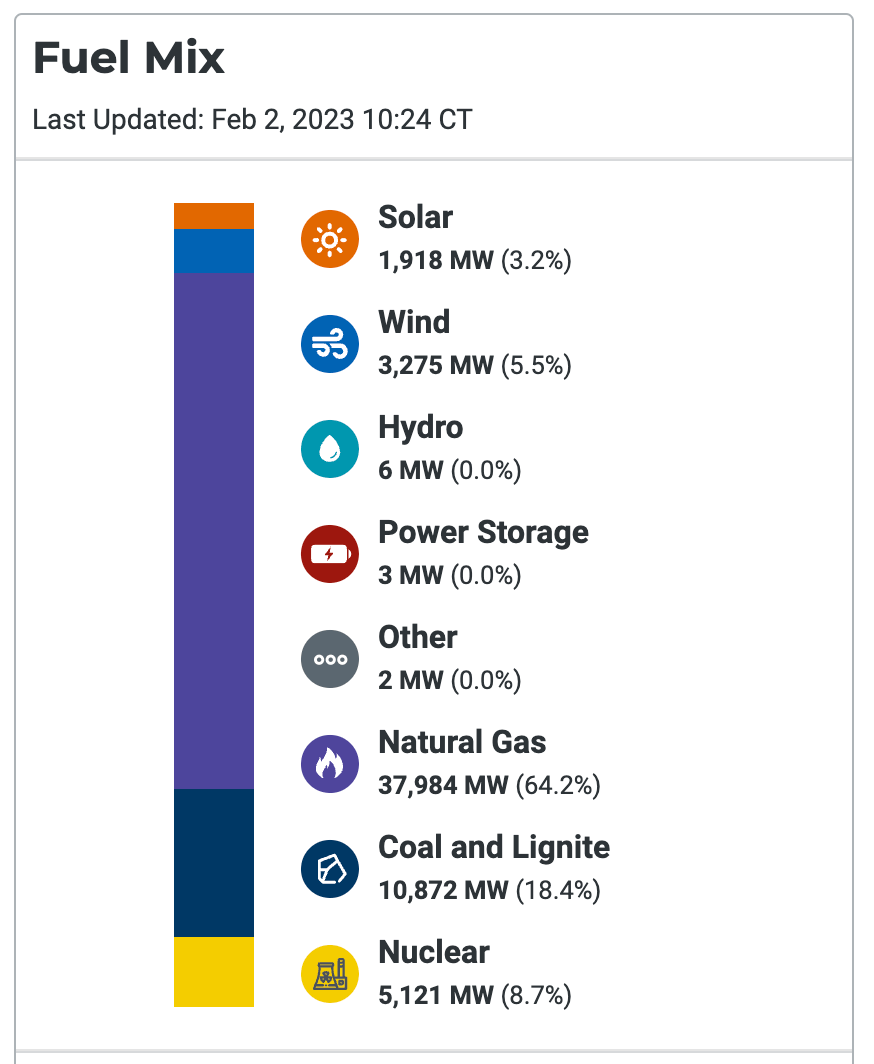 Here's a snapshot of the Lone Star state's fuel mix at time of writing: