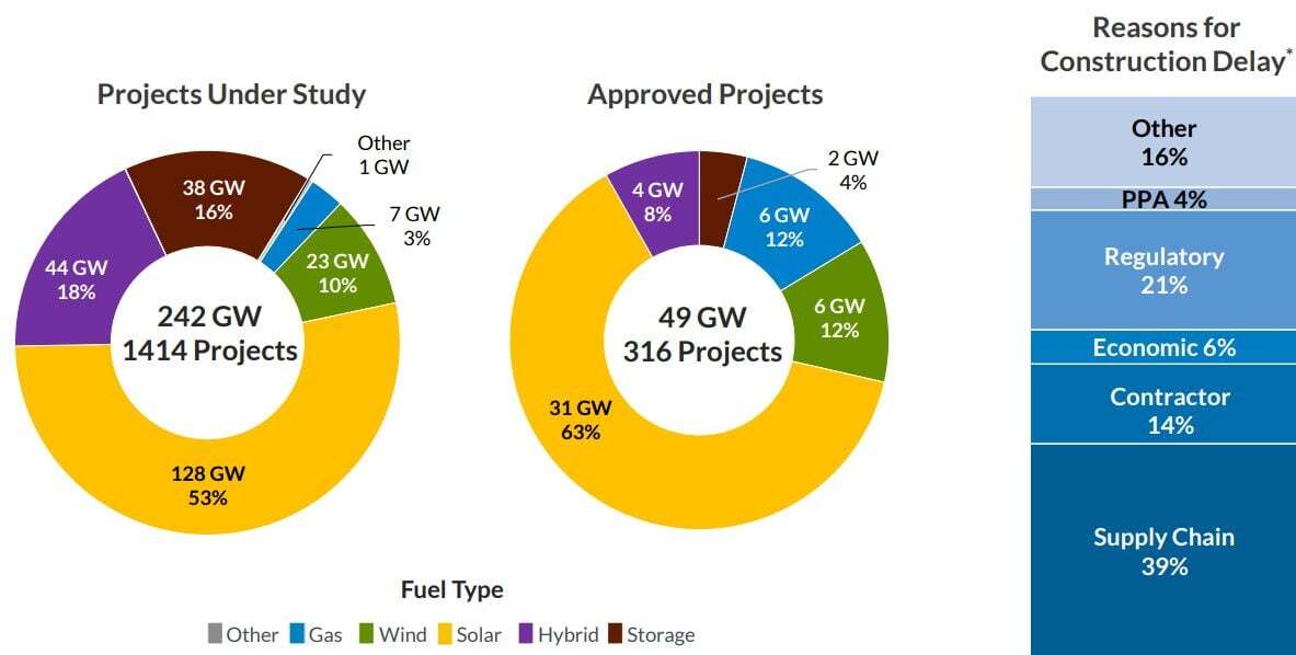 The Mid-continent Independent System Operator is witnessing 49 GW of delayed projects with interconnection approval.