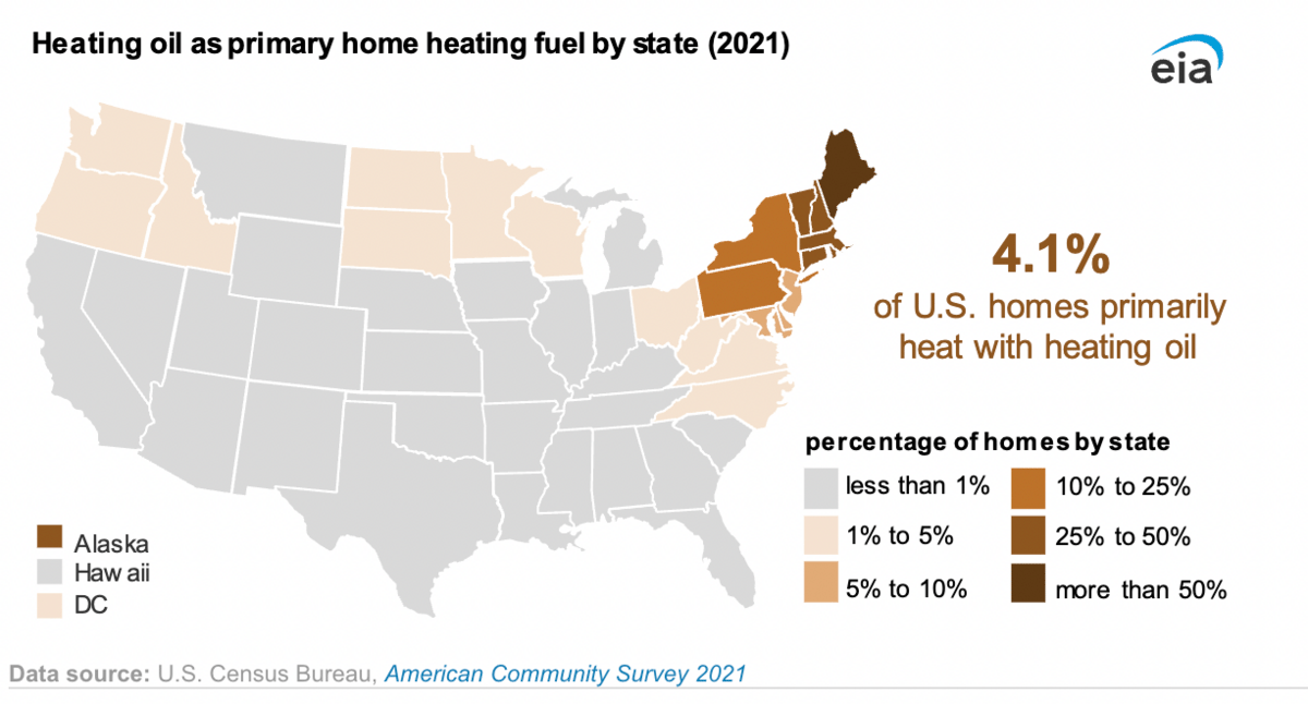 All of this will make things harder on New England where 33% of households use heating oil as their primary heating fuel. The EIA expects these households to pay 45% more on average for heating compared to last winter "because of higher retail heating oil prices and higher expected consumption."